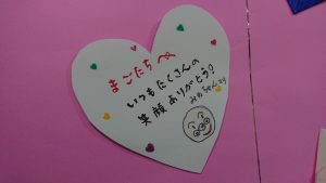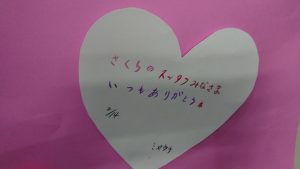 2月に入ると世間ではバレンタインデーに向けて大賑わいですね。デイサービスセンターさくらではバレンタインデーの2月14日を勝手に!?『ありがとうの日』と制定。
