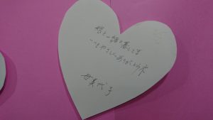 女性から男性に向けてのメッセージだけでなく、男女問わず感謝する気持ちを伝える日としてご利用者に案内。すると、ご利用者の皆さんから沢山の感謝メッセージが集まりました。可愛い孫への気持ち、普段は照れて言えないご家族への感謝の他、スタッフへの「ありがとう」メッセージも。