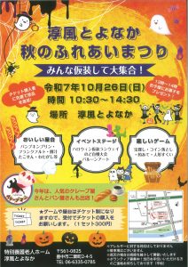 今年も特別養護老人ホーム淳風とよなかにて秋のふれあいまつりを開催します。