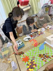 和柄の折り紙で自由に錦鯉を作っていただいていますが、