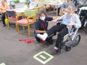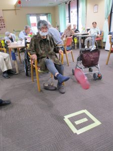 簡単そうに見えて意外と難し~い。なかなか点数が伸びませんでした。下半身を使ったいいレクリエーションになったかな、、、